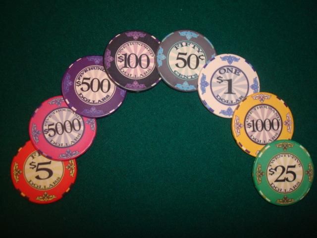 ポーカーをはじめ各種カジノゲームで遊ぶ際に必要なチップ(点数コマ)です。